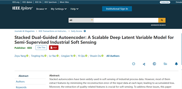 近日,我校工学院电气工程系杨泽宇老师以第一作者、研究生胡婷婷为第二作者在国际仪器和测量领域顶刊《IEEE Transactions on Instrumentation and Measurement》(中科院TOP期刊)上,发表题为“Stacked Dual-Guided Autoencoder: A Scalable Deep Latent Variable Model for Semi-Supervised Industrial Soft Sensing”的研究论文。