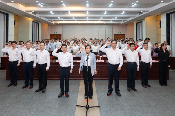 在学校举行的庆祝中国共产党成立104周年主题党日活动上,130余名师生党员在校党委书记许慧霞的带领下,面向鲜红的党旗,高举右拳,庄严宣誓。外国语学院党委、图书馆党总支等也组织了师生党员重温入党誓词,并深情合唱《没有共产党就没有新中国》,表达了对党的无限忠诚和热爱。